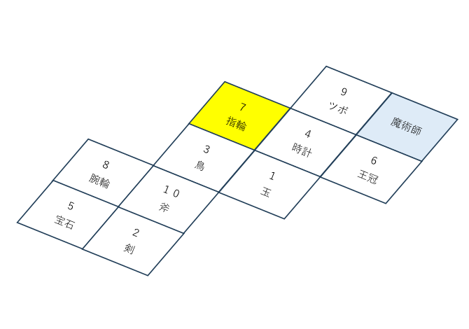 アイテムが透明になっています。スタート地点は黄色の部屋です