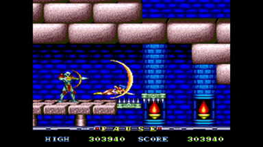 五体目の弓兵は四体目がいた位置から見えます。 少しタフですが平地なので対処は簡単でしょう。 ちなみに、五体目の後ろに小MPがありますが、上段に六体目がいます。 歩いて取りに行くと六体目のいい的になってしまうので、画像の位置からスライディングで一気に飛び込んで、戻る際もスライディングで抜けましょう。 |