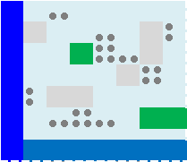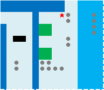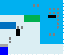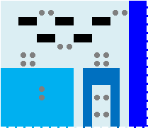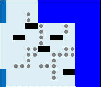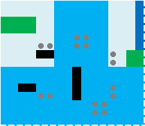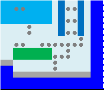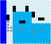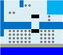 濃い水色の部分は凍り付いた湖面です。 上に乗ると猛スピードで滑ります。 ジャンプ移動をすれば滑りません。 Aボタンを押しっぱなしにすると連続ジャンプが出来るのでそれで移動するのもいいでしょう。 |
