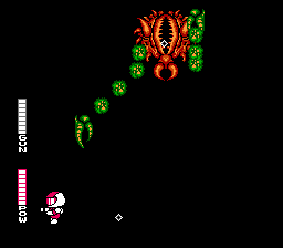 戦い方は向きを上に固定した状態で左右に動きながらショットで攻撃です、グレネードの間合いはボスに接触してしまいます。