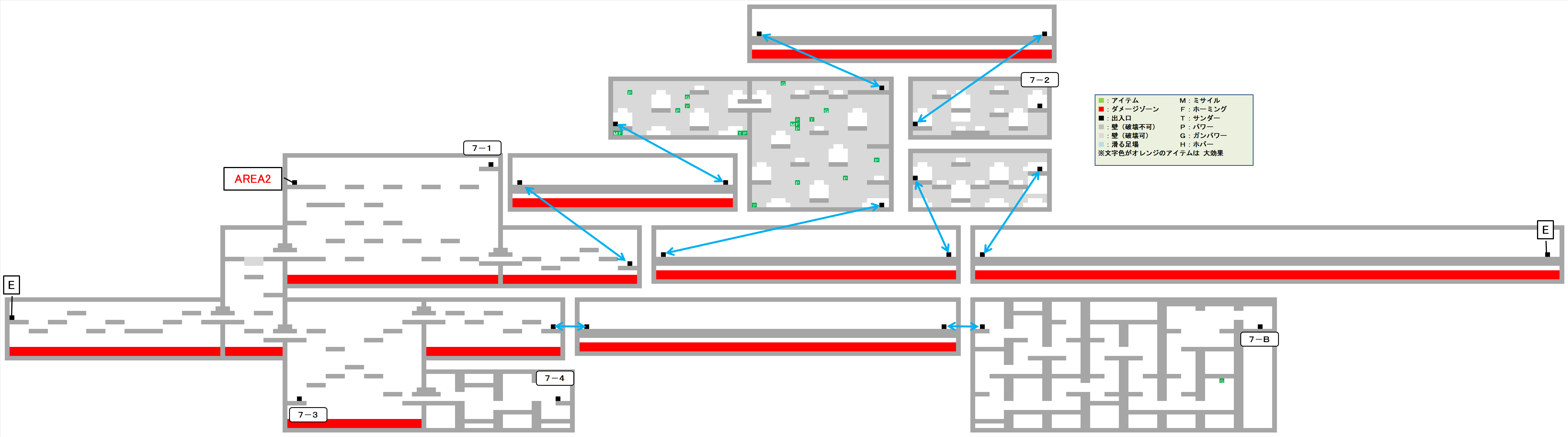 エリア2の長い縦穴通路を「WALL 1」で登った先に、エリア7への出入り口があります。