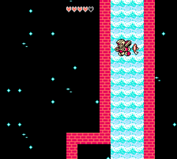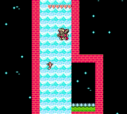 少し広い滝を落下して進みますが、ここに出現するコイは触れるとダメージを受けます。