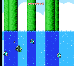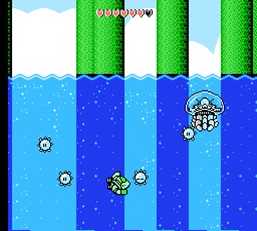 ボスは左右に移動しながら機雷を次々ばら撒きます。
