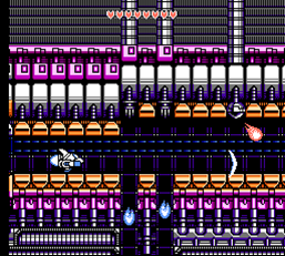 道中の終盤になると狭い通路にひしめく固定砲台をかわしていかなければなりません。