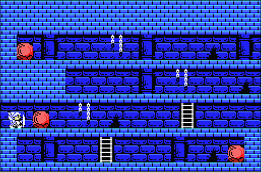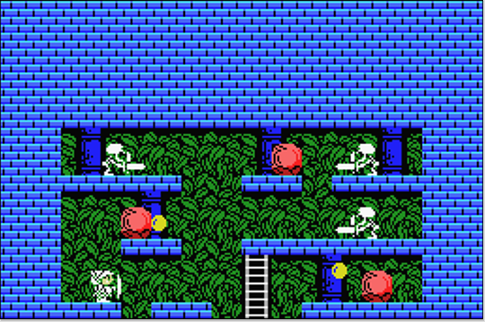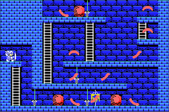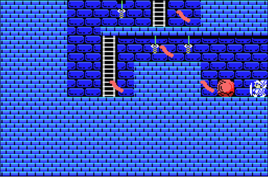 岩を破壊すると出る、ハシゴは昇ると消えるので注意