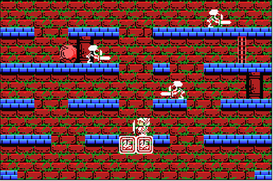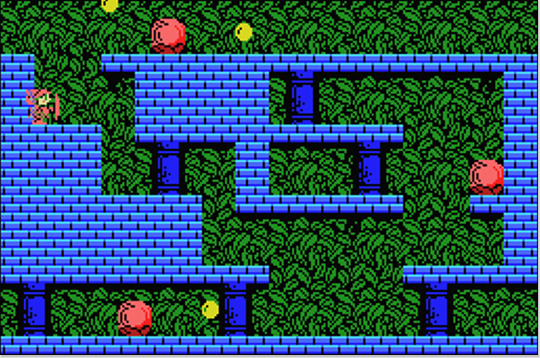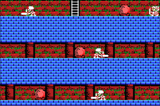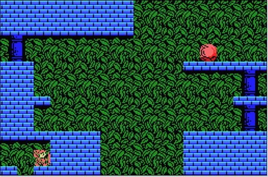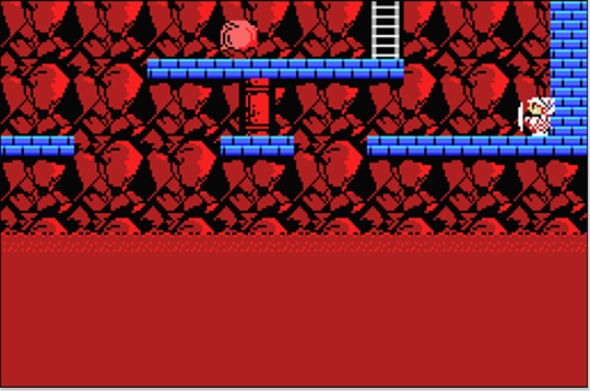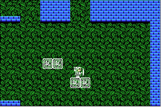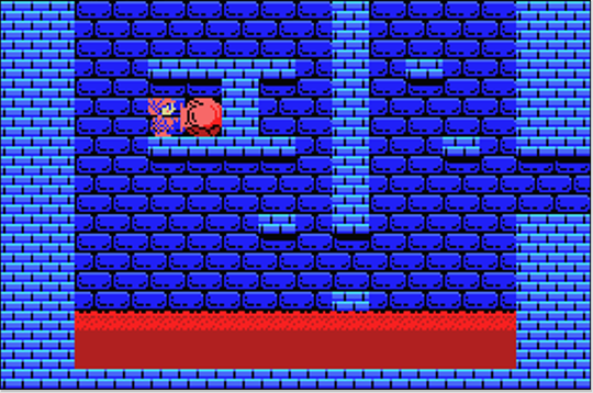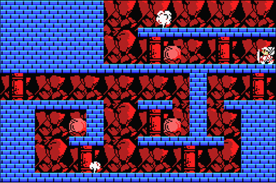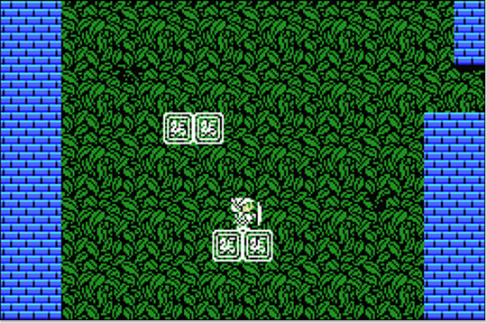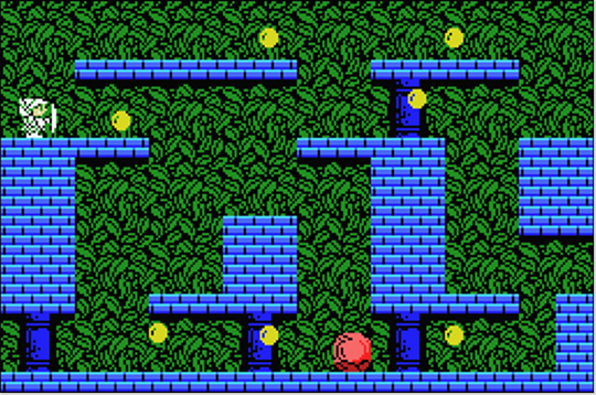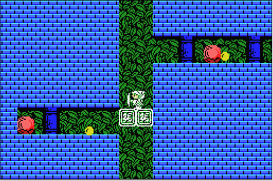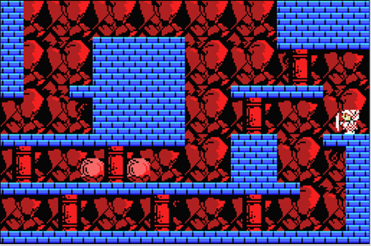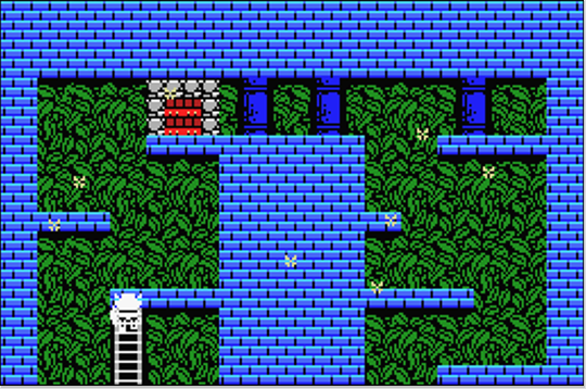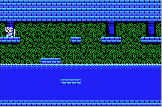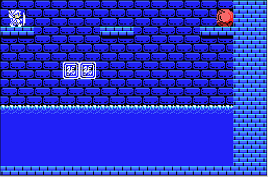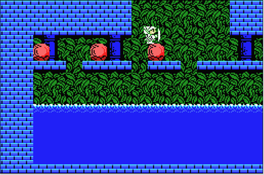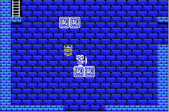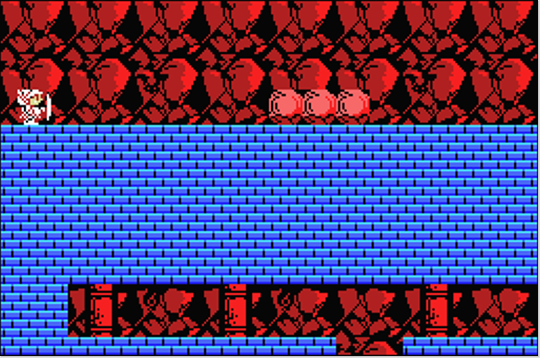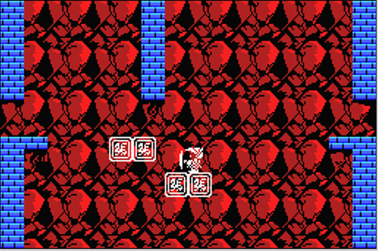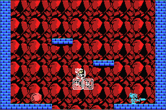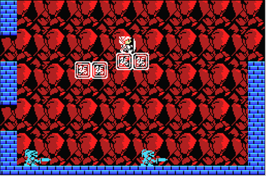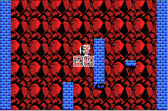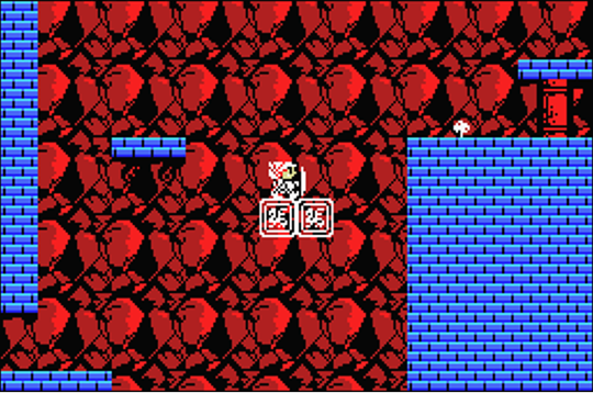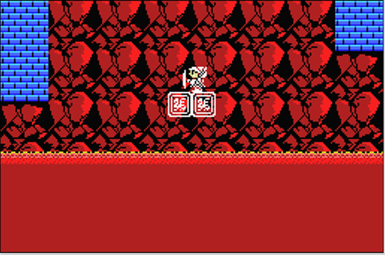 WORLD 4 クリア以降に最下段の中央の柱の間に立ち、右を向いて剣を 3 回、左を向いて剣を 3 回、その場でジャンプを 3 回