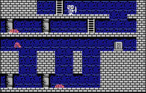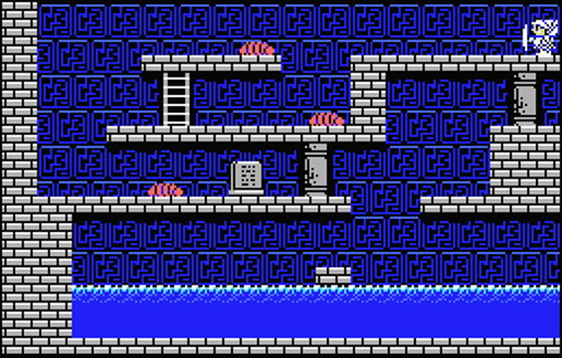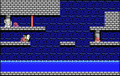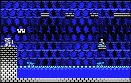 下段の岸辺で待っていると足場が出現して渡れるようになる