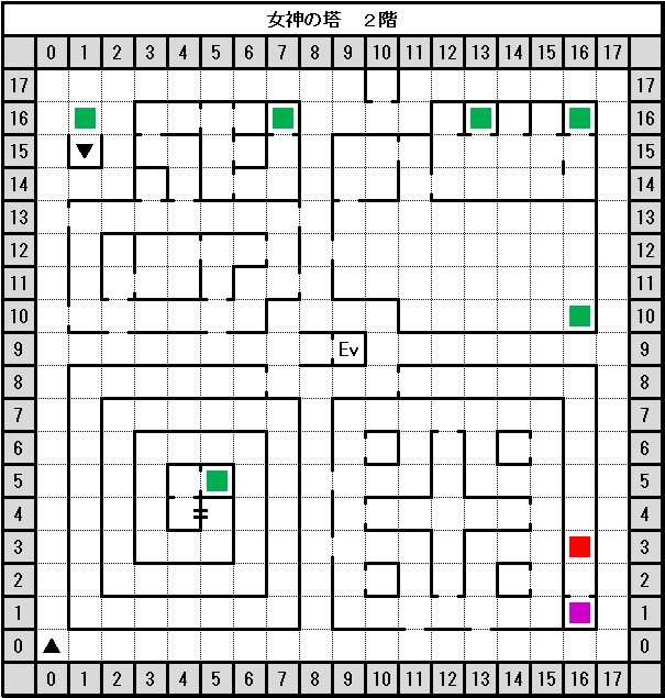 2 階 X05:Y05 戦闘:リザードマン * 6 (通常エンカウントの同種類より強いです。Def95以上推奨)