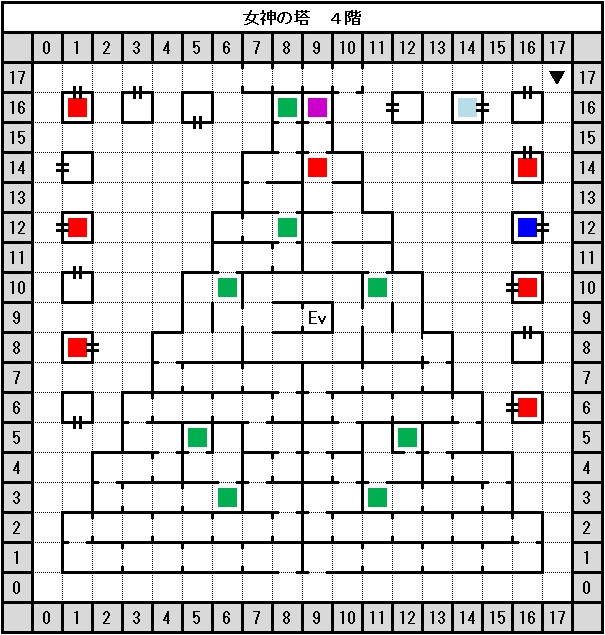 | 4 階 | X08:Y12 | 戦闘:デーモン * 6 (Def183で13×6匹分のダメージ、攻撃魔法を連発した方がいいかも) |