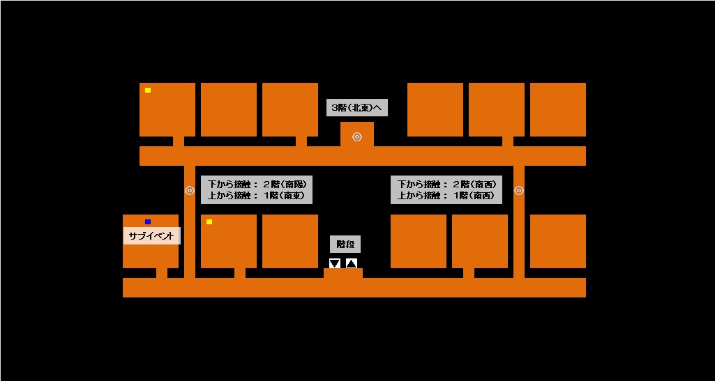 | 魔法学院 1F | 東側タテ通路の魔方陣に北から触れ、2Fの北西にワープする |