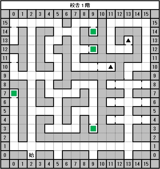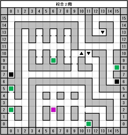 | 校舎 2F | X06Y09 | 教室 | 上り階段の情報を聞く |