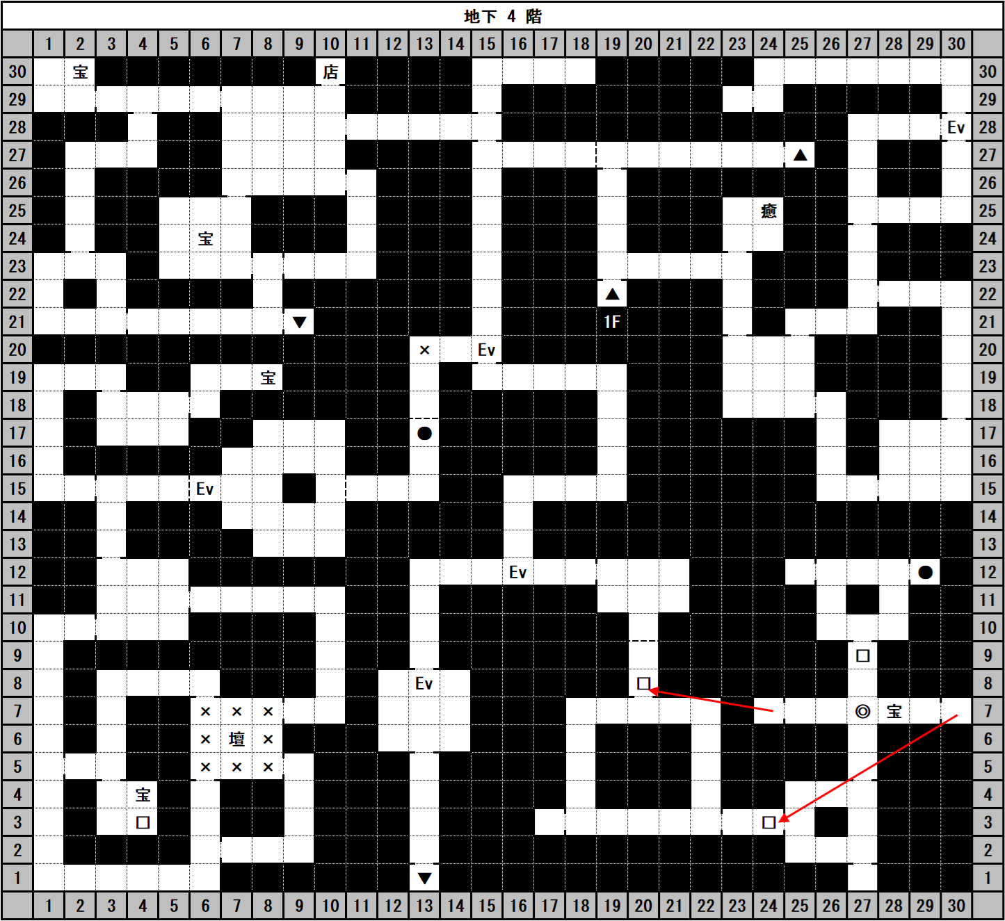 | 地下 4 階 | Y20X14 | この辺りで「フワリの魔法」を使っておく | すぐ先の見えない壁の前後に罠があるため |