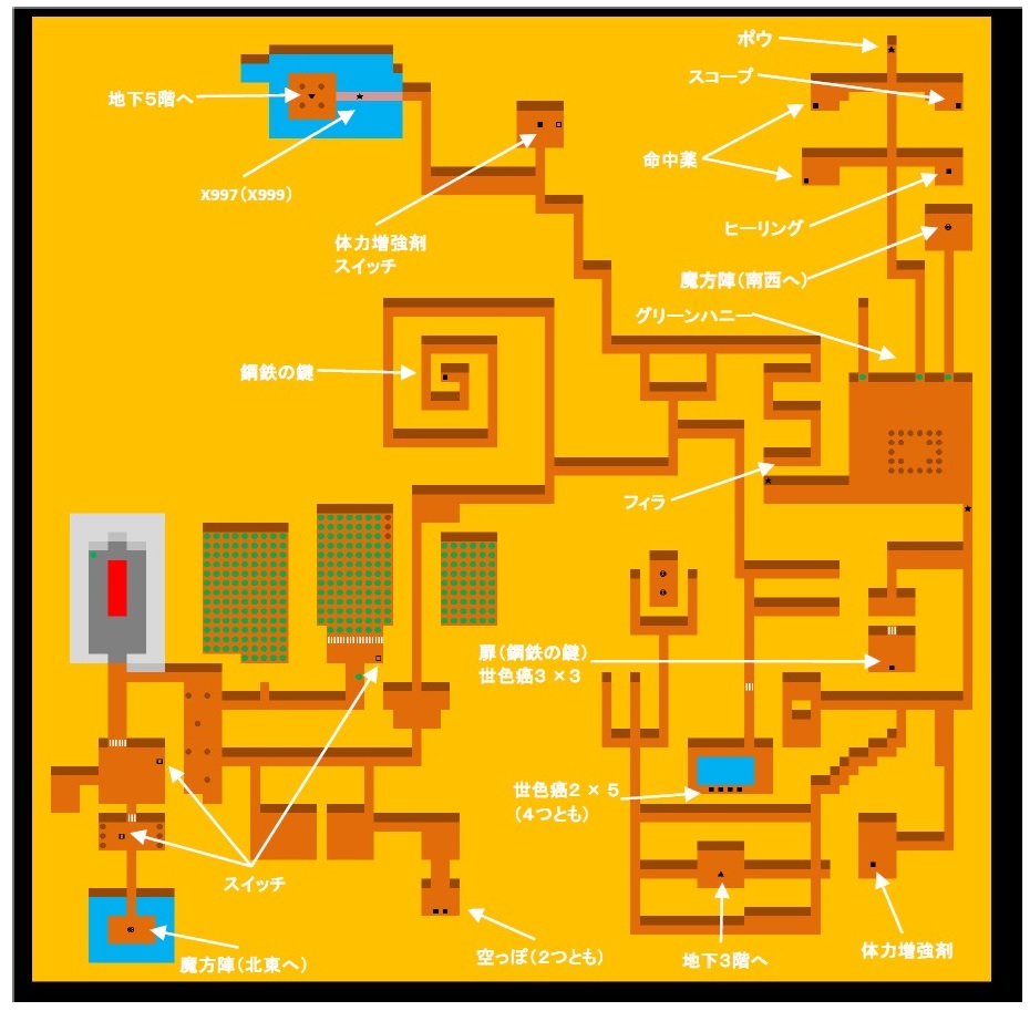 | 世色癌2 * 5 | 下り階段手前のスイッチを踏んだ後、そこから南東の池近く |