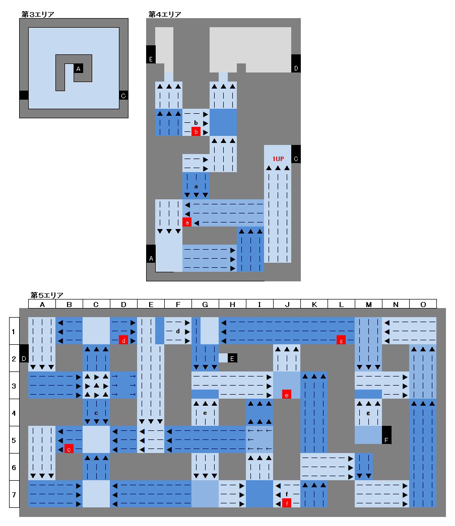 ※ちなみに C から 第4エリア へ何度も出入りしつつ 1UP を取ることで無限増殖ができます。